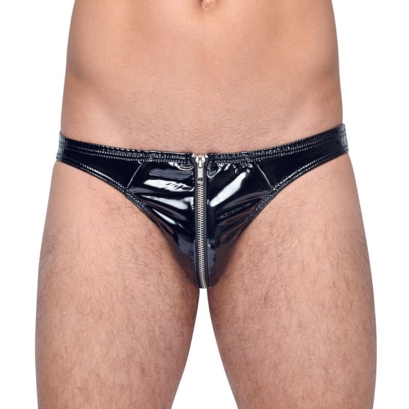 Klassischer schwarzer Slip von Black Level aus längs- und querelastischem 4-Wege-Stretch-Lack für eine optimale Passform mit hohem Tragekomfort. Hochwertig gearbeitet mit schmal eingefassten Säumen und unterlegtem Metall-Reißverschluss vorne.