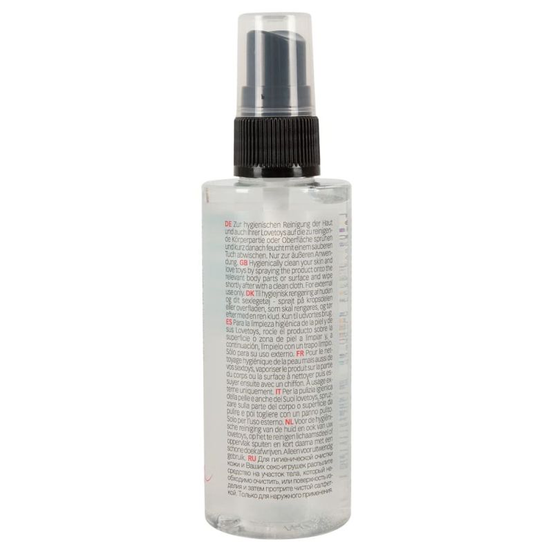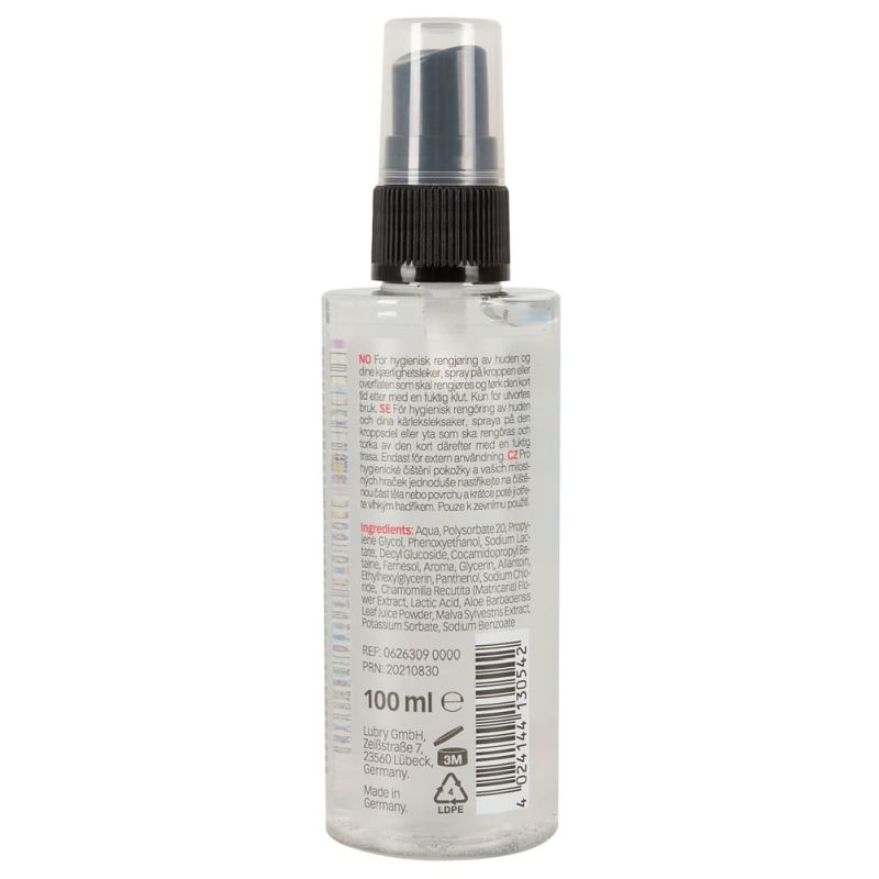 2in1 Clean von Just Play reinigt schonend sowohl den Intimbereich als auch Lovetoys. Die Alkohol- und parfümfreie Rezeptur ist bakterienhemmend und enthält u.a. Malven- und Kamillenextrakt sowie hautpflegendes Aloe Vera. Sehr ergiebig: Aufsprühen, kurz einwirken lassen und anschließend mit einem feuchten, sauberen Tuch nachwischen. Vegan. 100 ml.