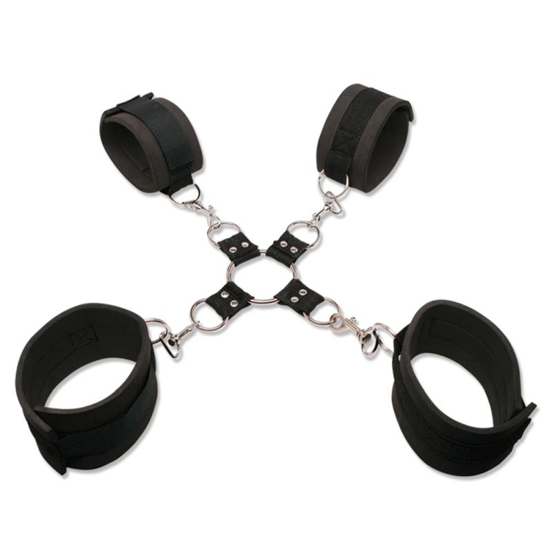 Die Hand- und Fußfesseln ist angenehm gepolstert und verstellbar mit Klettverschluss. Robust und belastbar – ideal für Fesselspiele.