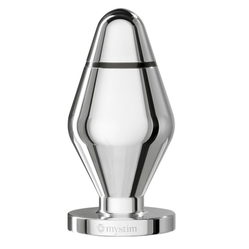 Dieser Butt Plug ist mit einem Durchmesser von 5 cm ein ideales Analtoy. Das glatte Metall verjüngt sich, so dass der Butt Plug leicht eingeführt werden kann. Bereits nach wenigen Zentimetern erfolgt die Isolierung zwischen den beiden Polen, und die elektrische Stimulation ist schon sehr früh spürbar. Man kann dieses prickelnde, lustvolle Vergnügen entweder über Stunden genießen, oder die Stimulation variieren und intensivieren, so dass man schnell zu sensationellen Höhepunkten getrieben wird. Gesamtlänge: 10,5 cm, drm.: 5 cm, Gewicht: 300g,