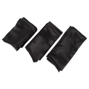 5-teiliges Satinbänder-Set mit 1 längerem Band für den Kopf und 4 kürzeren Bändern zum Fesseln von Händen und Füßen. Aus glänzendem Stoff, doppellagig genäht und mit leicht abgeschrägten Enden. Ideal für sinnliche Fesselspiele.