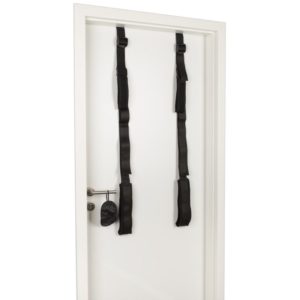 Liebesschaukel zum Befestigen an der Tür. Keine Montage benötigt. Bestehend aus zwei schwarzen, mehrfach verstellbaren Gurten mit Schlaufen für Arme und Beine an zwei Acrylstangen. Belastbar bis 120 kg. Inklusive Augenmaske.