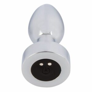 Glatt und nahtlos gefertigter Heavy Metal Butt Plug with Vibration von ANOS im klassischen Plug-Design. 7 Vibrationsmodi sorgen für aufregende Abwechslung im Hinterstübchen und sind direkt am Toy bequem per Knopfdruck steuerbar. Die angenehm große runde Basis sorgt dabei für sichere Handhabung ohne Hineinrutschen. Auch längeres Tragen des 120 g schweren Plugs ist somit möglich. Da wasserdicht auch in Badewanne oder unter der Dusche nutzbar.