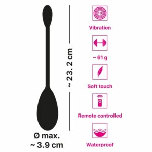 Mit einem Gewicht von 61 g eignet sich dieses Vibro-Ei perfekt für ein beginnendes vaginales Training. Rundum aus hautfreundlichem Silikon mit seidiger Soft Touch Textur gefertigt, lässt sich das Vibro-Ei leicht einführen und sorgt für höchsten Trainings-/Verwöhnkomfort. Dazu ist das Vibro-Ei wasserdicht und kann auch mit ins/unter Wasser genommen werden.