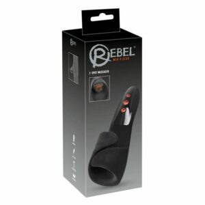 Handlicher Masturbator F-Spot Massager von Rebel mit flexiblen Flügeln, die den Penis fest umschließen. Grandiose Stimulation mit 10 Vibrationsmodi in 3 Geschwindigkeiten und einer pochend-pulsierenden Klopf-Funktion direkt am empfindlichen Frenulum (Penisbändchen) für intensive Orgasmen – auch bei Erektionsstörungen.