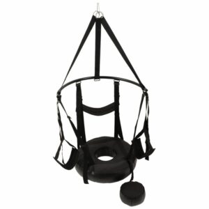 Die Liebesschaukel Sex Donut ermöglicht einfallsreiche und vielseitige Stellungen ohne sich sportlich verrenken zu müssen. Dabei sorgen das dicke weiche runde Sitzpolster und der breite gepolsterte Rückengurt für höchsten Komfort und Bequemlichkeit. Das mittige Sitzpolster (Kissen) kann auch aus dem Donut (Ring) entfernt werden, um durch die Öffnung weitere Sex-Varianten zu genießen. Die gepolsterten Fuß-/Beinschlaufen sind für bequeme Stellungen mit weit gespreizten Beinen ebenfalls in der Höhe verstellbar.