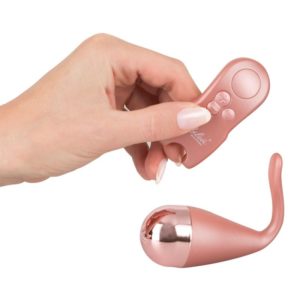 Dieses äußerst schöne Vibro-Ei bietet ein doppeltes Verwöhnprogramm, denn es verwöhnt nicht nur vaginal, sondern mit dem kleinen Reizarm auch klitoral. Zur Auswahl stehen 4 Vibrationsmodi in jeweils 4 Vibrationsgeschwindigkeiten, die getrennt voneinander per Knopfdruck an der Fernbedienung (Reichweite bis zu 5 Meter) steuerbar sind. Ausgehend vom Ei breiten sich die Vibrationen bis in den starren Reizarm aus, um auch Ihre Lustperle zu verwöhnen. Für noch mehr Komfort und sanftere Stimulation sorgt das beiliegende Silikonkissen, welches über die Spitze des Klitorisreizarms gestülpt werden kann. Das Vibro-Ei ist nicht nur wasserdicht gemäß IPX7, sondern auch durch Induktion wiederaufladbar mit beiliegender Ladeschale und USB-Kabel. Ladezeit ca. 180 Minuten, Laufzeit ca. 45 Minuten, Stand-by ca. 120 Minuten. Eine Knopfzelle für die Fernbedienung liegt bei.